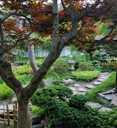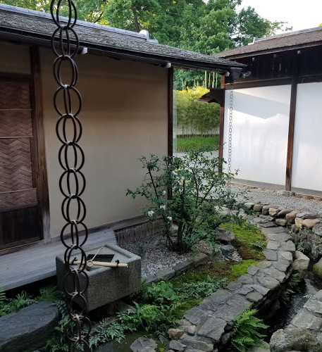 On Monday May 20th, Women in Horticulture joined Kim Andrews, Executive Director of Shofuso Japanese House and Garden and the Japan Society of America, for an After Hours Tour of Shofuso. Before the tour of the garden and house, some of us joined Kim for a short walk and talk around the Centennial Arboretum. As the group sat at the Alexander Stirling Calder Sundial and viewed the magnificent allée of cherry trees, Kim detailed the history of the area before, during, and after the Centennial Exhibition, focusing on the Japanese influence. A brief passing shower had the group take shelter in the gazebo nearby and share more about the area, its metamorphosis , and our own backgrounds and experience in horticulture.